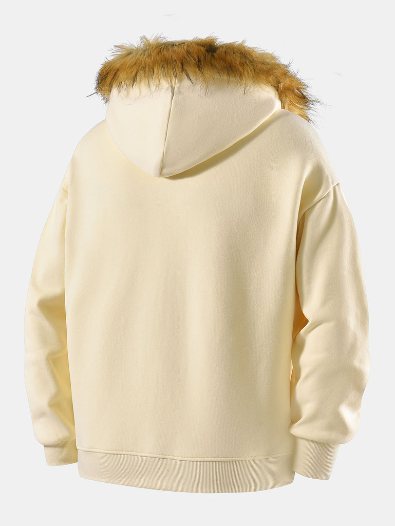 リラックスフィット フェイクファー襟 ジップアップフーディー