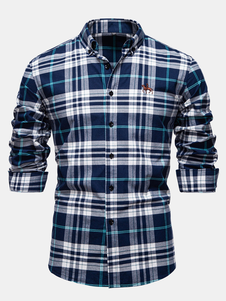 Πουκάμισο Καρό με Κουμπιά από Βαμβάκι με Κεντήματα Καουμπόι